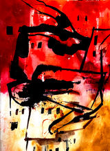 Artworks including oil on canvas, ink on paper, mixed media, watercolor on paper, acrylic on canvas, acrylic on paper and digital image and collage drawing